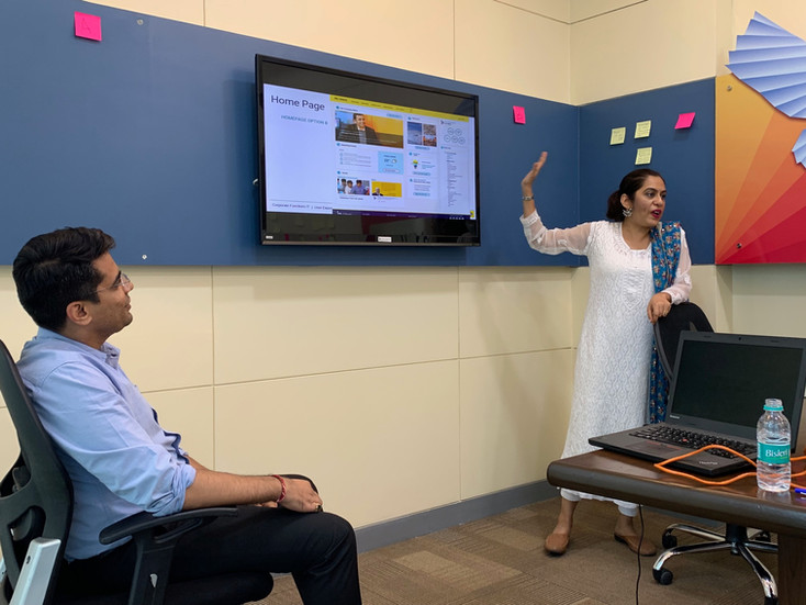 Facilitated a four-day design sprint in Mumbai, producing three executive readouts and improving intranet usability: 55% increase in findability and 38% more required content identified.