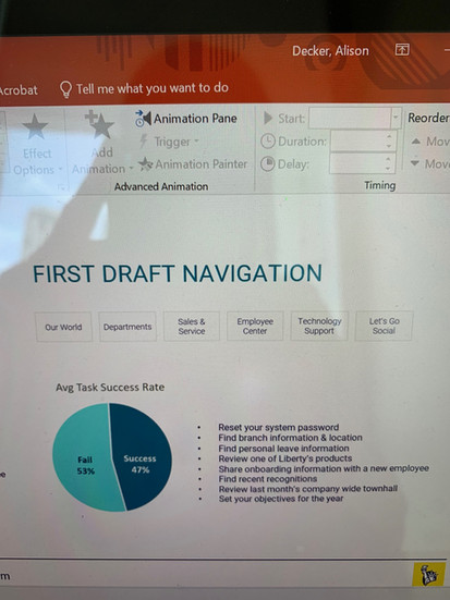 Short answer: The proposed intranet information architecture came up short. 53% of all first-click actions in the hallway studied failed to select the correct navigation option.